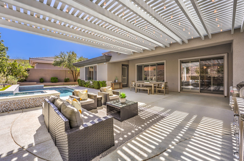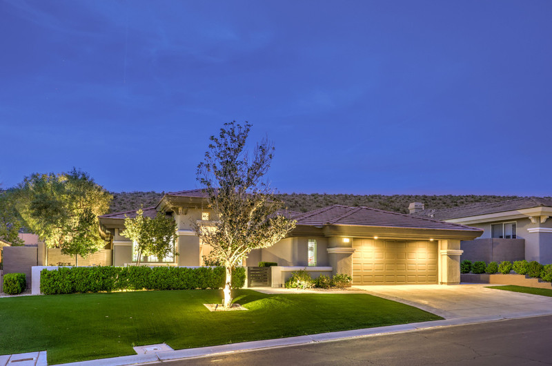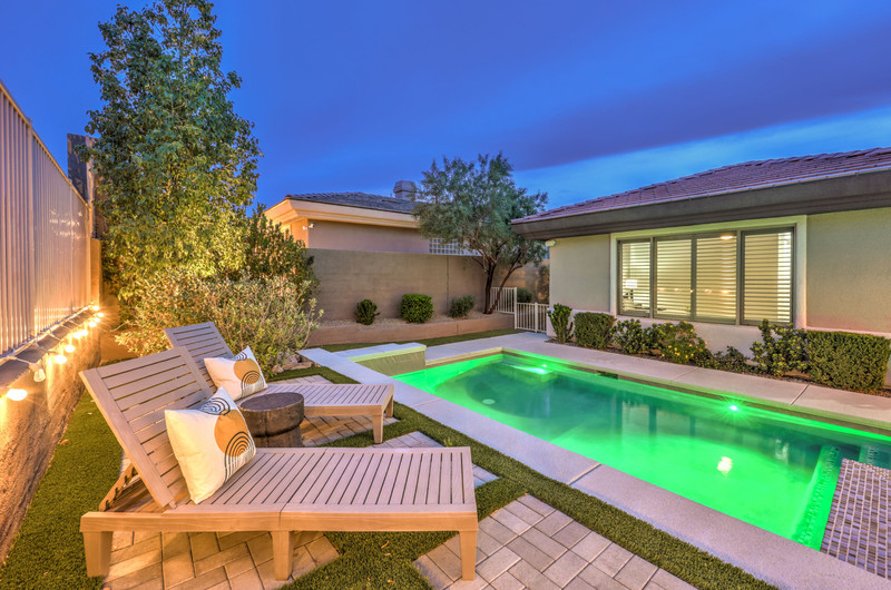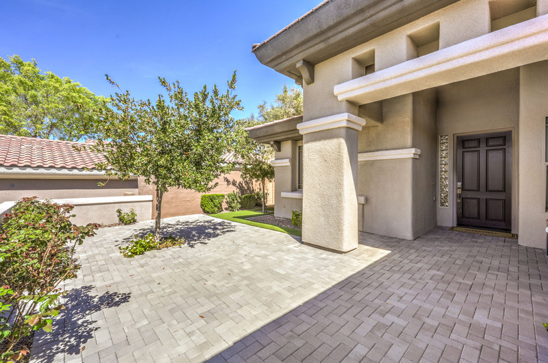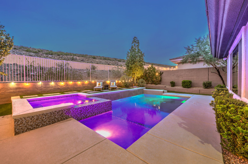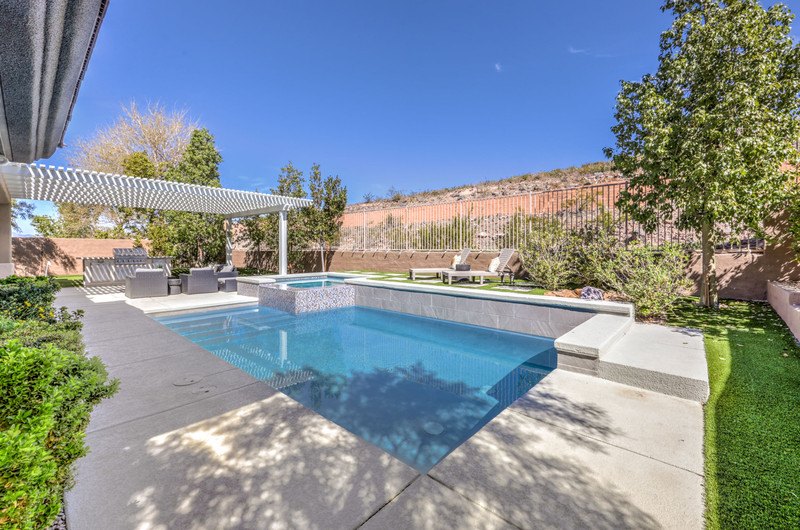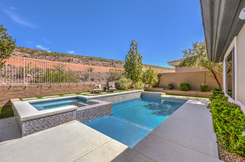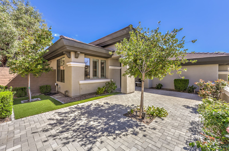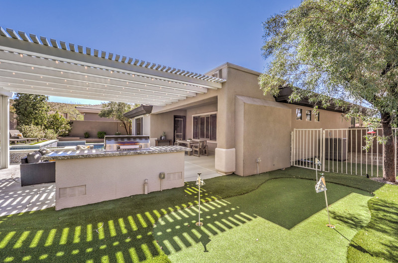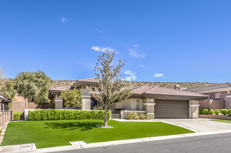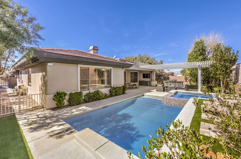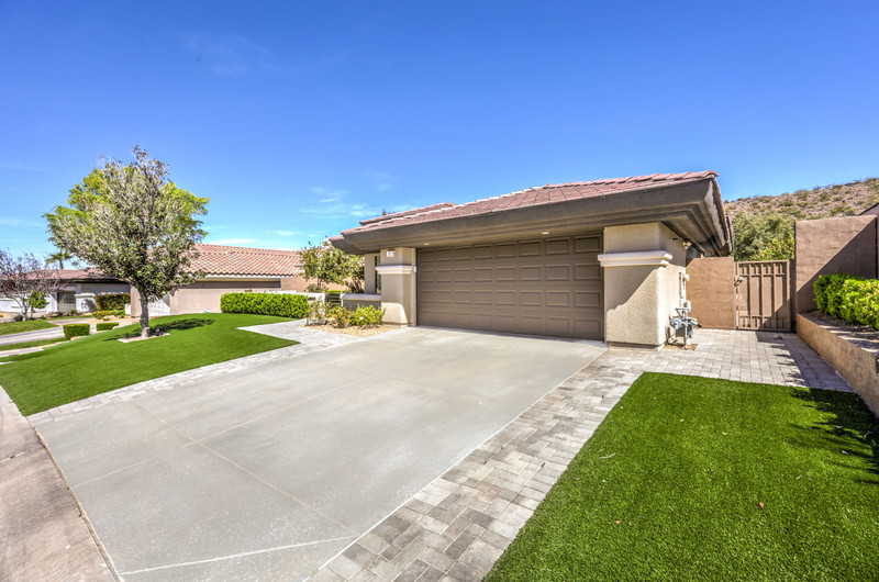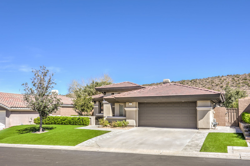 This thoughtfully updated 1-story home in prestigious Anthem Country Club offers a welcoming courtyard entry and has been fully renovated from head to toe! Situated on a quiet culde-sac with a tranquil hillside location, this 3 bedroom/2 bath home is turnkey and ready for you to enjoy. Stylish design and decor throughout makes this pristine home a rare find! The chef's kitchen has gorgeous custom cabinetry, SS appliances, and glimmering quartz countertops. With ceiling fans and shutters throughout, the large primary suite has two separate closets and a spa-like bathroom. And wait until you see the resort-style backyard with a sparkling pool & spa, covered patio, BBQ center and lush landscaping to enjoy the comfort and privacy of your peaceful retreat. The oversized 2-car garage can also accommodate a golf cart or tons of storage. With golf, tennis, pickleball, swimming, dining & a fun social calendar, this home is truly designed for an exceptional country club lifestyle. It's a GEM!