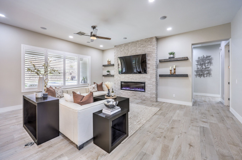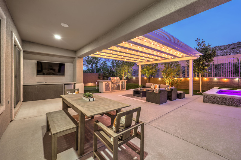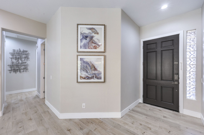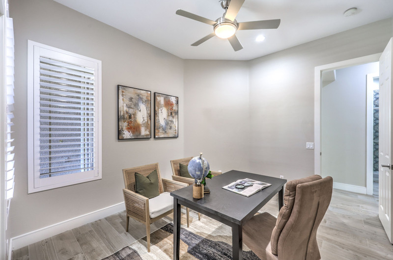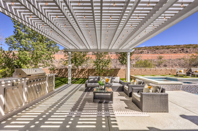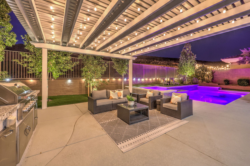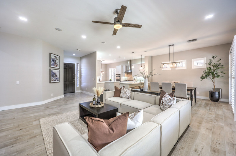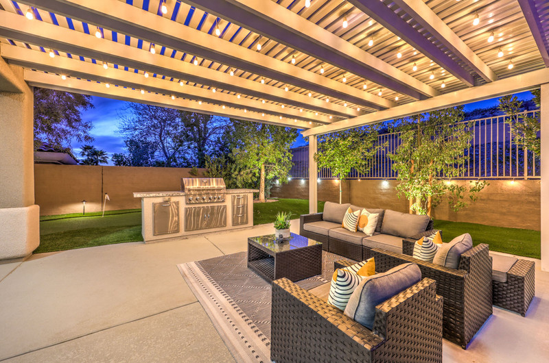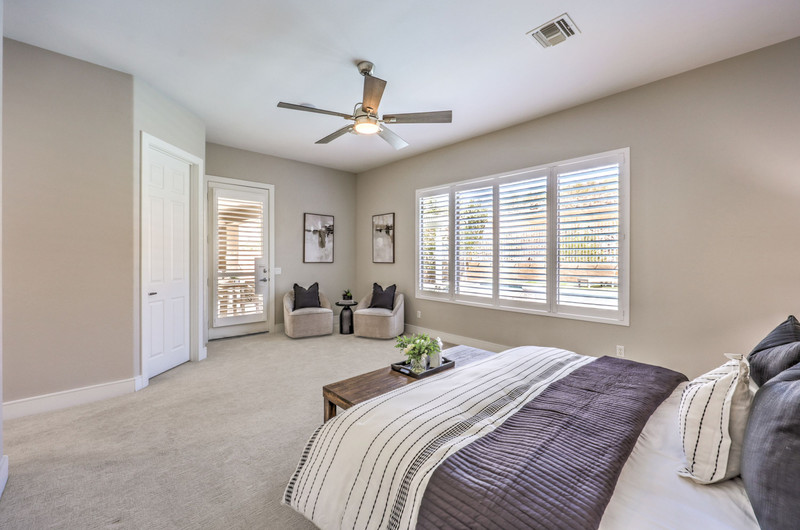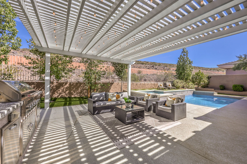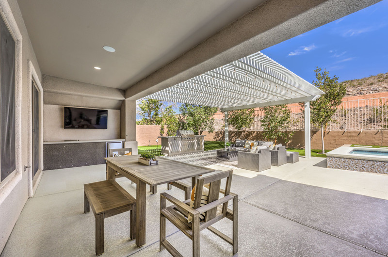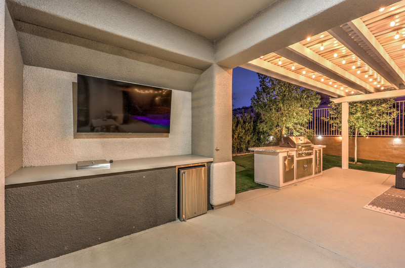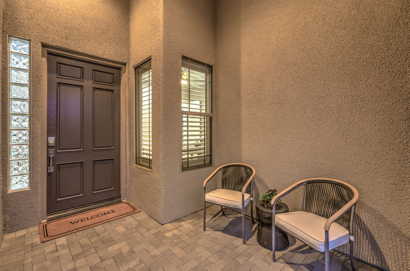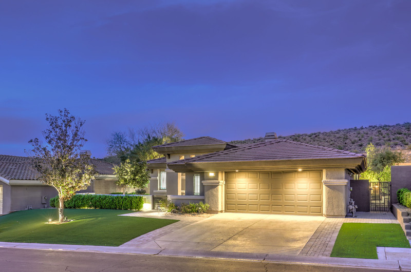 This thoughtfully updated 1-story home in prestigious Anthem Country Club offers a welcoming courtyard entry and has been fully renovated from head to toe! Situated on a quiet culde-sac with a tranquil hillside location, this 3 bedroom/2 bath home is turnkey and ready for you to enjoy. Stylish design and decor throughout makes this pristine home a rare find! The chef's kitchen has gorgeous custom cabinetry, SS appliances, and glimmering quartz countertops. With ceiling fans and shutters throughout, the large primary suite has two separate closets and a spa-like bathroom. And wait until you see the resort-style backyard with a sparkling pool & spa, covered patio, BBQ center and lush landscaping to enjoy the comfort and privacy of your peaceful retreat. The oversized 2-car garage can also accommodate a golf cart or tons of storage. With golf, tennis, pickleball, swimming, dining & a fun social calendar, this home is truly designed for an exceptional country club lifestyle. It's a GEM!