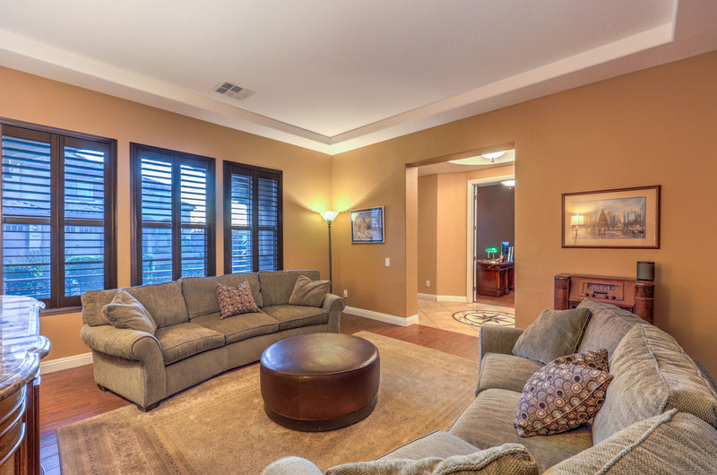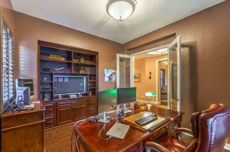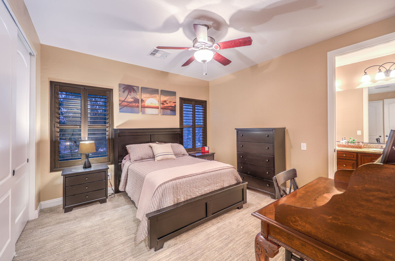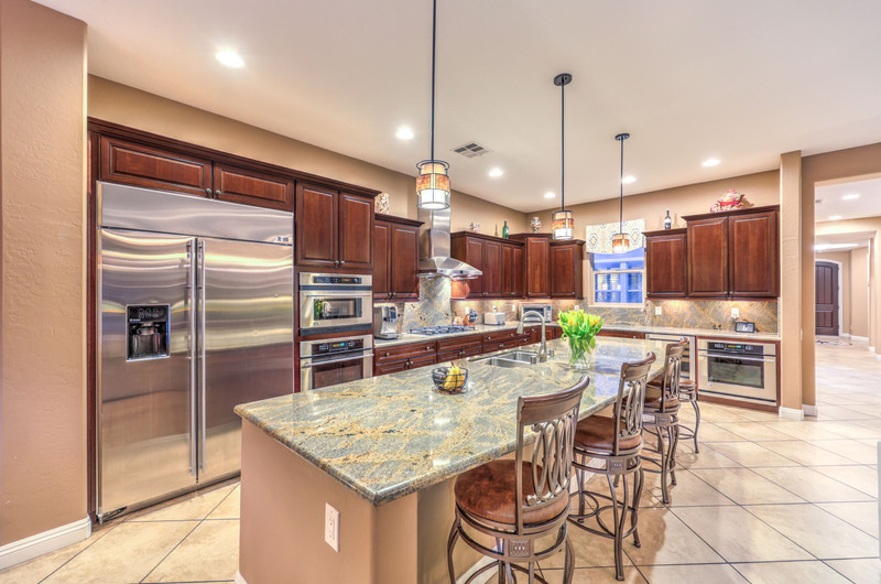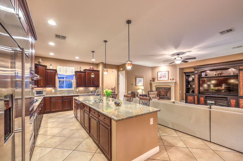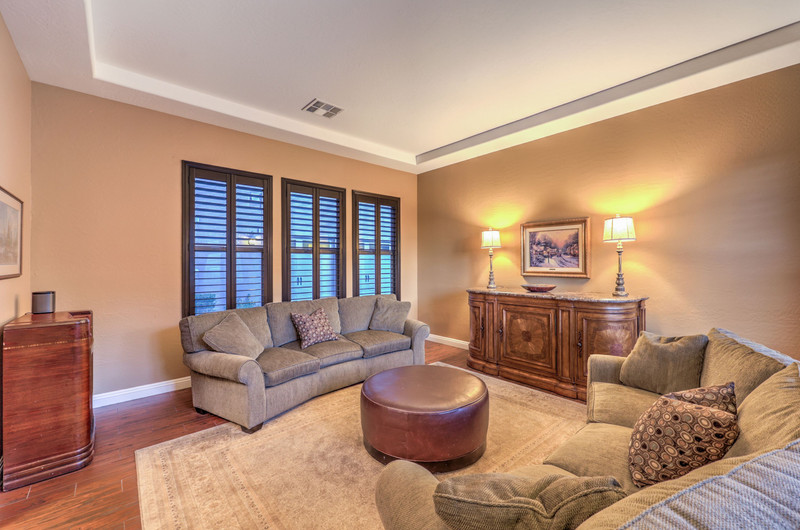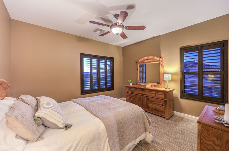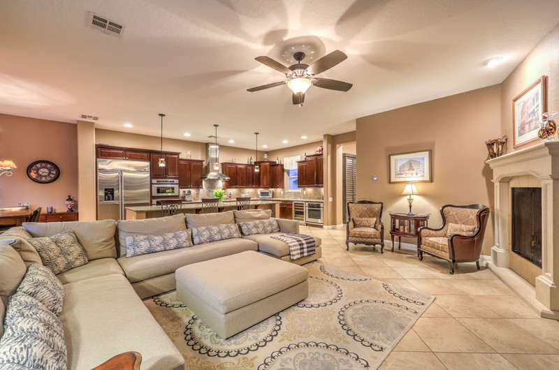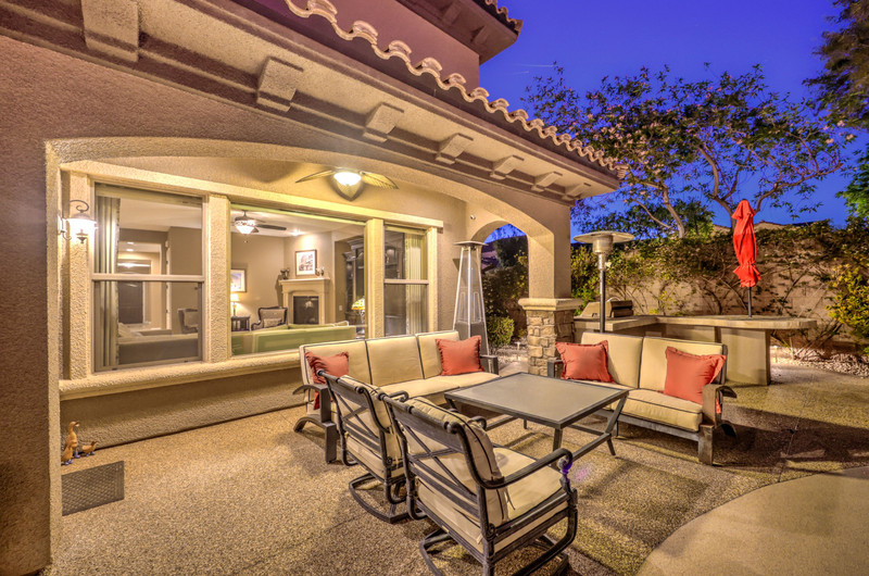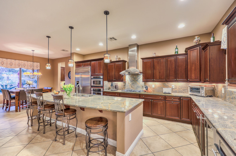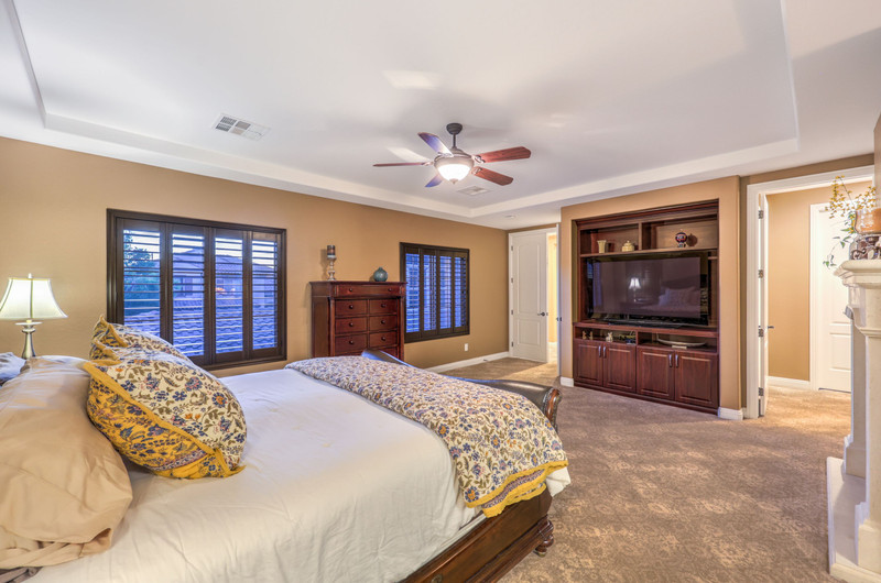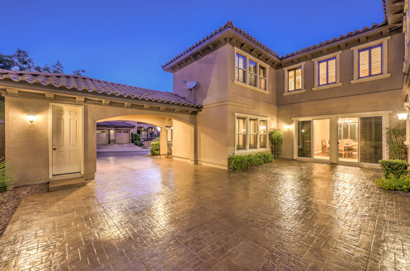 Luxury estate on just under 1/3-acre corner lot. This home is perfect for entertaining, with over 4700 square feet of living area, 5 bedrooms including a casita, office, loft/game room, and 5.5 bathrooms. A gourmet kitchen fit for a chef features stainless steel appliances, including 2-convection ovens, 5-burner cooktop, built-in refrigerator, dishwasher, wine fridge, granite countertops and backsplash, large island with breakfast bar, walk-in pantry with ample storage, breakfast nook and mini office area with built-in desk. The spacious great room is ideal for gatherings with large, picturesque windows to the backyard, fireplace, and media niche. There is a formal living room and a separate formal dining room with cathedral ceilings. The office has double glass doors and built-in cabinets with shelving. The loft/game room is perfect size to create a theatre with its own balcony. The grand primary retreat is separate from the other bedrooms with double door entry, a sitting room, fireplace, built-in media niche, 2 walk-in closets, jetted tub and separate shower. Large secondary bedrooms all have access to full bathrooms including a casita with its own entrance. Throughout, you will find upgraded touches like plantation shutters, laundry room with sink and cabinets, a porte-cochere with oversized driveway that is perfect for adding iron gates, 3-car garage + separate storage unit, stamped concrete driveway, ceiling fans, upgraded carpeting, tile floors, and more. The massive backyard paradise is perfect for entertaining with lush landscaping, self-cleaning pebble tech pool, raised spa with waterfall, built-in BBQ with refrigerator, large 3-burner firepit, 2 covered patios, pebble stone and pebble flex patio. Enjoy resort style living that includes 24-hour guard-gated security, club house, pool and spa, tennis court, pickle ball courts, basketball court, kids club room, library, fitness center with a full range of quality exercise equipment, and more. The Club Madeira neighborhood also has an extensive social calendar for all ages. Just minutes to award winning schools, shopping, coffee, gyms, restaurants, and freeway access.