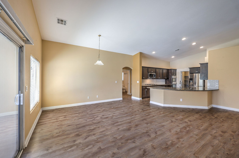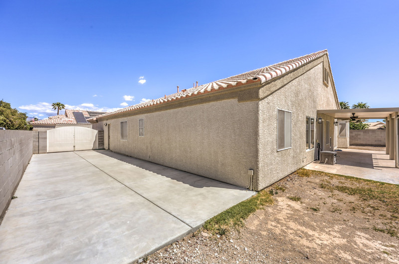 A sliding glass door provides direct access from both the living room and primary suite to the backyard. The home also includes an RV side yard with a concrete pathway and gated access, offering additional parking for recreational vehicles or extra storage.